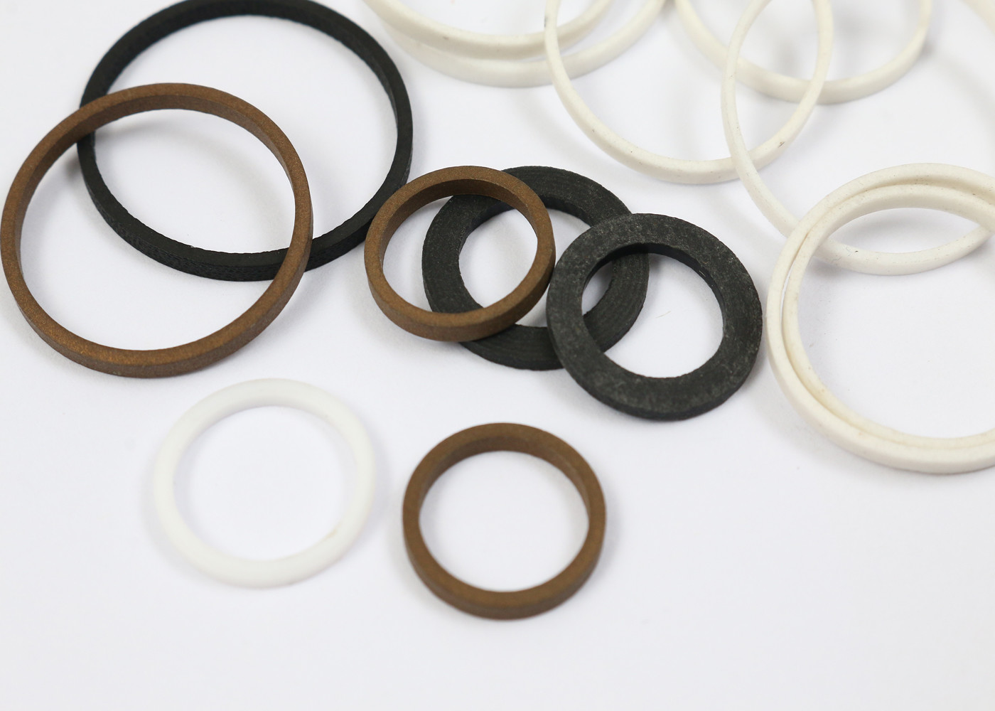 Materials: glass fiber filled ptfe, copper powder filled ptfe, polyimide filled ptfe, carbon fiber filled ptfe, ceramic powder filled ptfe, peek filled ptfe,